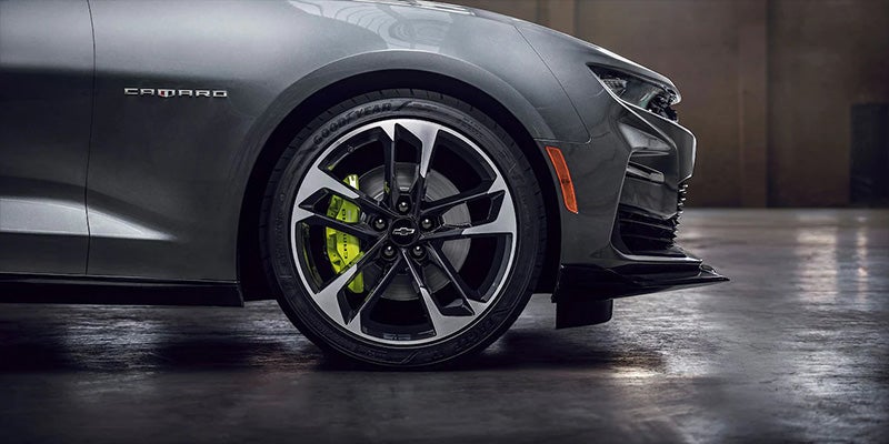 The Chevy Camaro comes in eight trim levels for 2023: 1LS, 1LT, 2LT, 3LT, LT1, 1SS, 2SS, and ZL1. If you choose the standard 1LS trim level you get 18-inch wheels. The LT1 trim adds run-flat all-season tires, Brembo Brakes, a performance-tuned suspension, 20-inch wheels, and an external oil cooler. Consider the ZL1 trim level for upgraded Brembo brakes, 20-inch Dark Graphite wheels with wider performance tires, and a ZL1-exclusive rear spoiler.